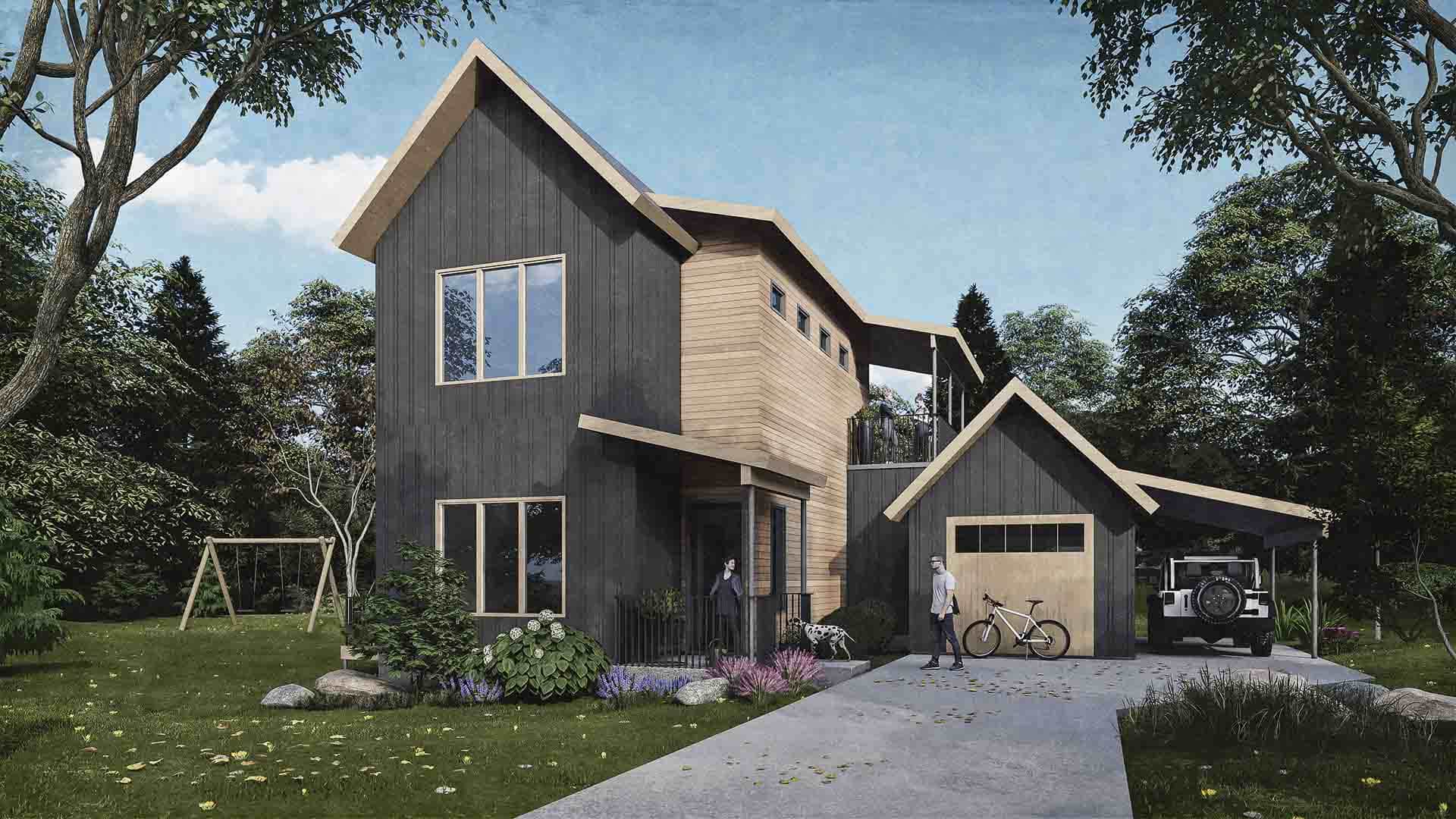 Inspired by the natural landscape and timeless forms, these homes blend bold, modern design with classic charm—each thoughtfully crafted to maximize space, light, and connection to the outdoors. From the cozy compression of entryways that open into vaulted ceilings and expansive views, to compact footprints that fit effortlessly into their settings, every residence offers unique spaces for gathering, solitude, and living fully. Whether it’s the modern reinterpretation of a vintage cottage, the dynamic flow of a barn-inspired profile, or the All American cottage nestled among the trees, these homes celebrate both community and sanctuary in harmonious balance.