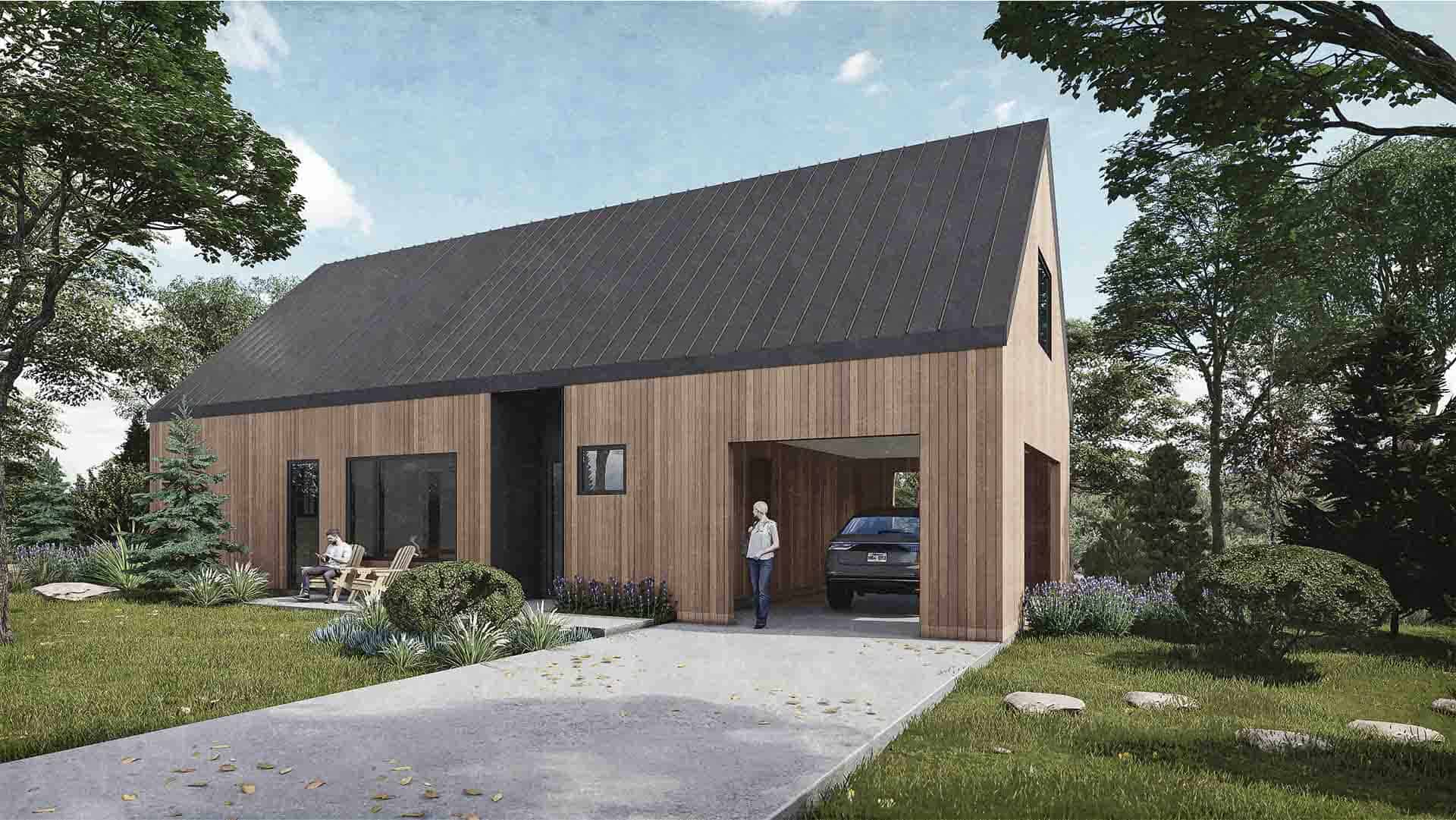 The barn burner embodies one of the most straightforward forms in residential architecture. This modern interpretation at 1450 square feet, reimagines the barn’s simplicity, offering a fresh perspective on space and living. The front door compresses the entry, heightening the sense of expansiveness upon entry, where vaulted ceilings and expansive glazing open up to the landscape beyond.